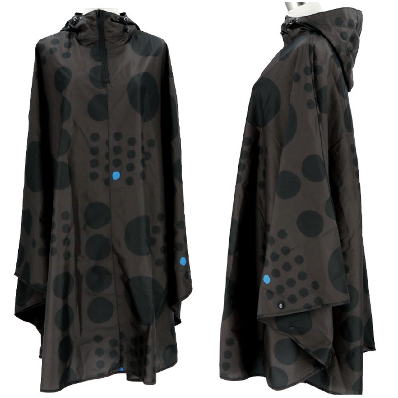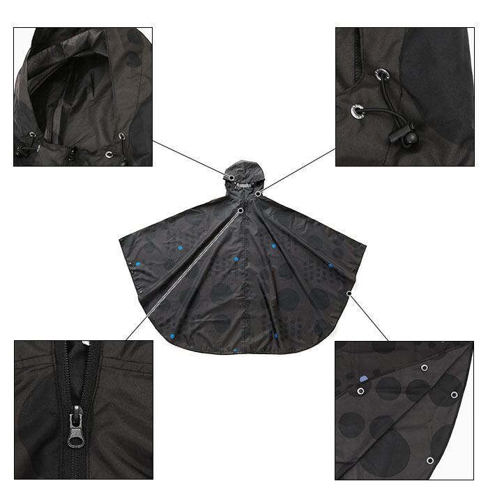 ・両サイドのスナップボタンを留めれば、レインコートの袖のように手を通すことができて、ポンチョの生地が身体にフィット!