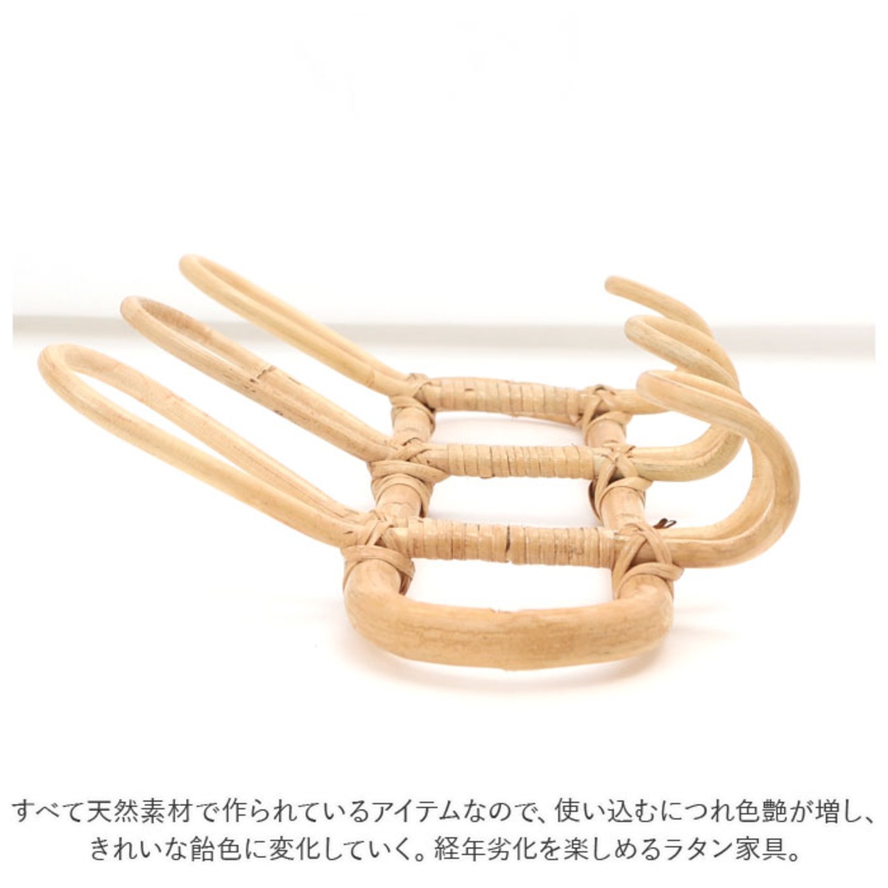 ・すべて天然素材で作られているアイテムなので、使い込むにつれ色艶が増し、きれいな飴色に変化していく。経年劣化を楽しめるラタン家具。(※素材由来の斑点やシミ、色ムラなどが見られますが、商品の特性としてご理解願います。)