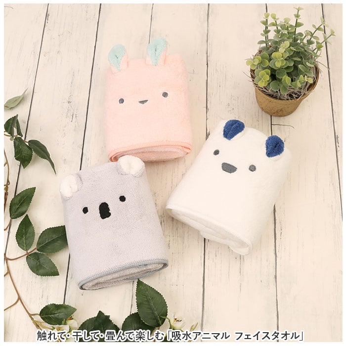 ・触れて・干して・畳んで楽しむ「吸水アニマル フェイスタオル」。