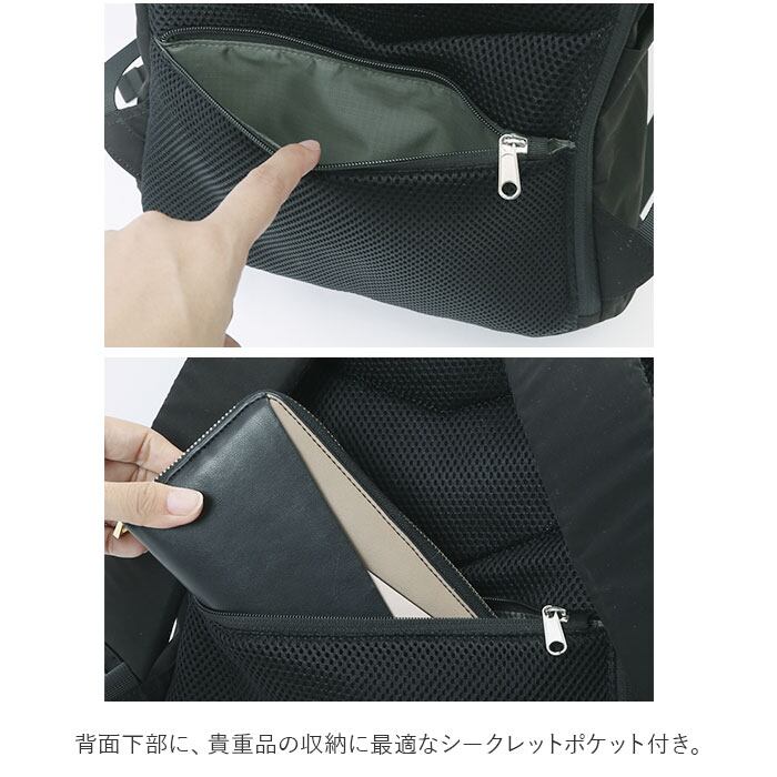 ・背面下部に、貴重品の収納に最適なシークレットポケット付き。