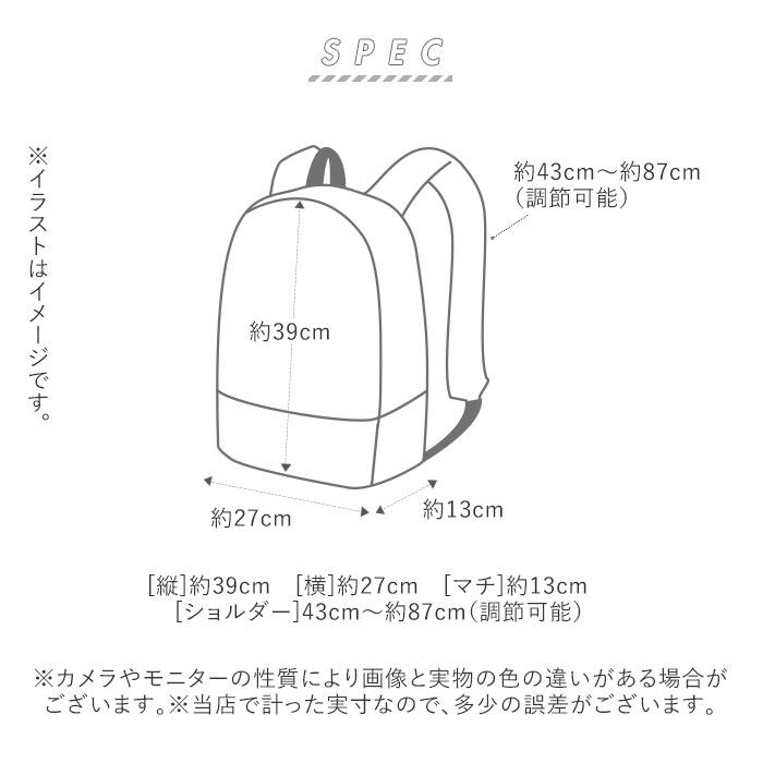 ※この製品ははっ水加工を施した生地を使用しておりますが、防水構造ではありません。強い雨の中での使用の際は、製品上縫い目等の部分から水が浸入するおそれがありますのでご注意ください。また、経年や過度の水洗いによりはっ水加工が低下するおそれがありますのでご注意ください。