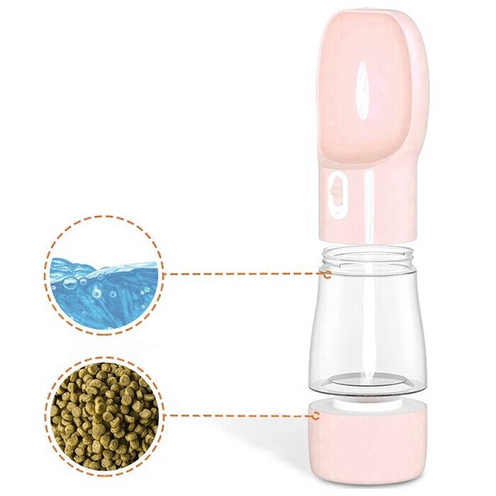 ・258mlの水と200ml分のペットフードやおやつを1つのケースに収納できる便利なワンタッチ給水ボトル。