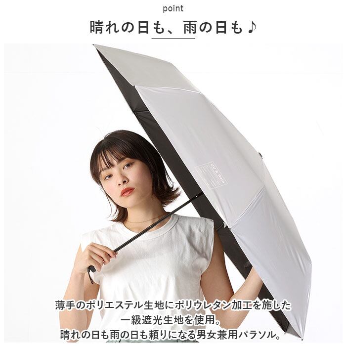 ・薄手のポリエステル生地にポリウレタン加工を施した一級遮光生地を使用。晴れの日も雨の日も頼りになる男女兼用パラソル。