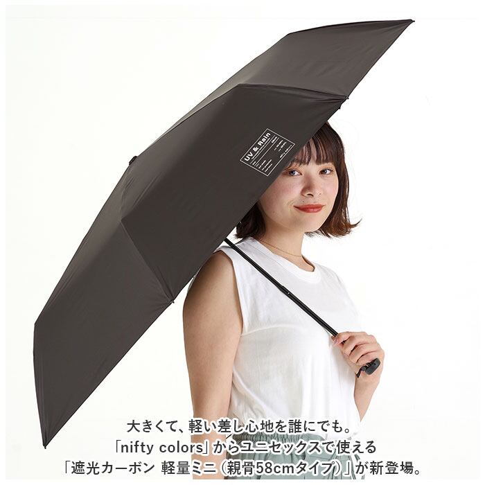 ・大きくて、軽い差し心地を誰にでも。「nifty colors」からユニセックスで使える「遮光カーボン 軽量ミニ(親骨58cmタイプ)」が新登場。