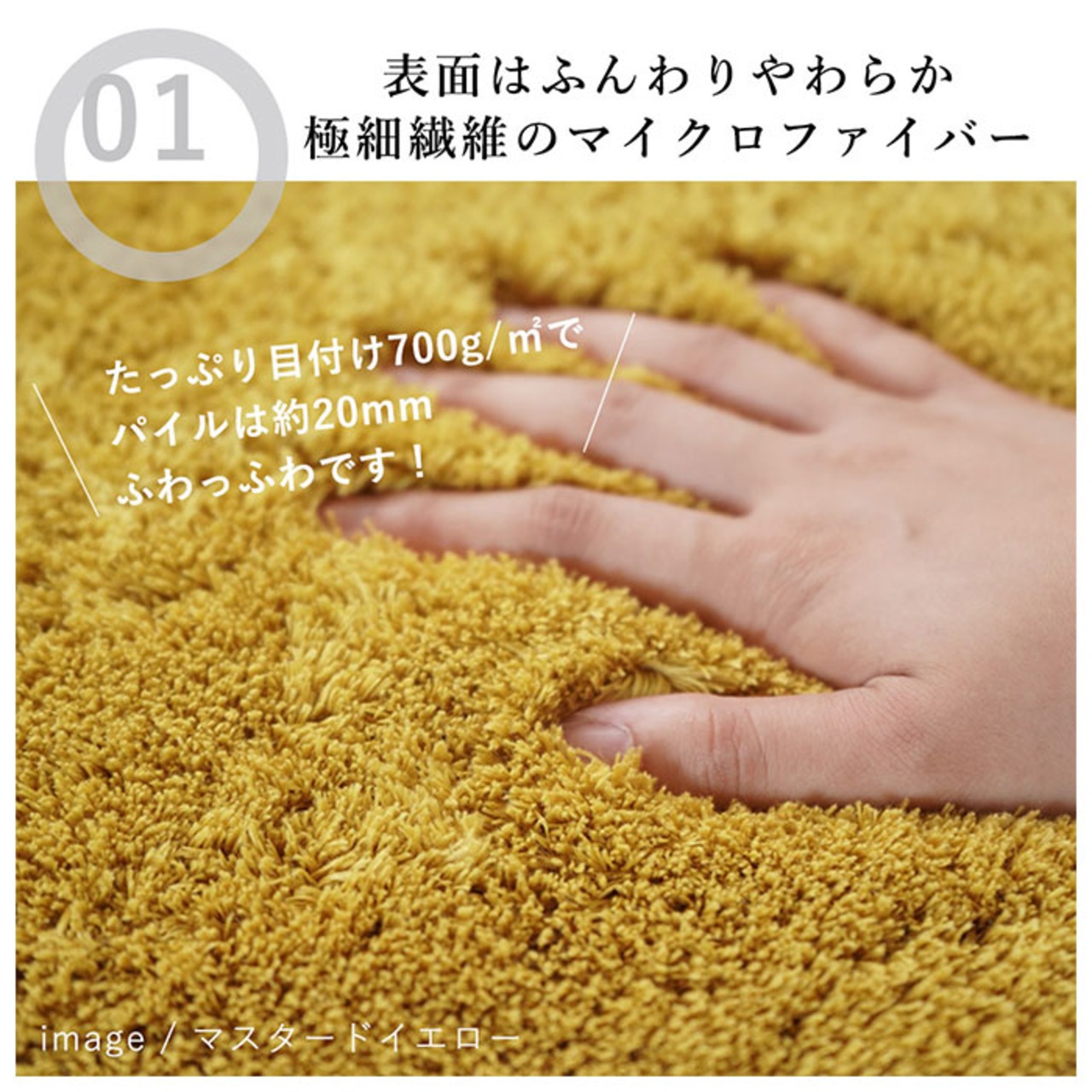 ・毛足の長さ20ミリのパイル毛には極細繊維のマイクロファイバーを採用し、まるで猫ちゃんの背中を撫でているかのような、ふんわり極上の手触りが持ち味。