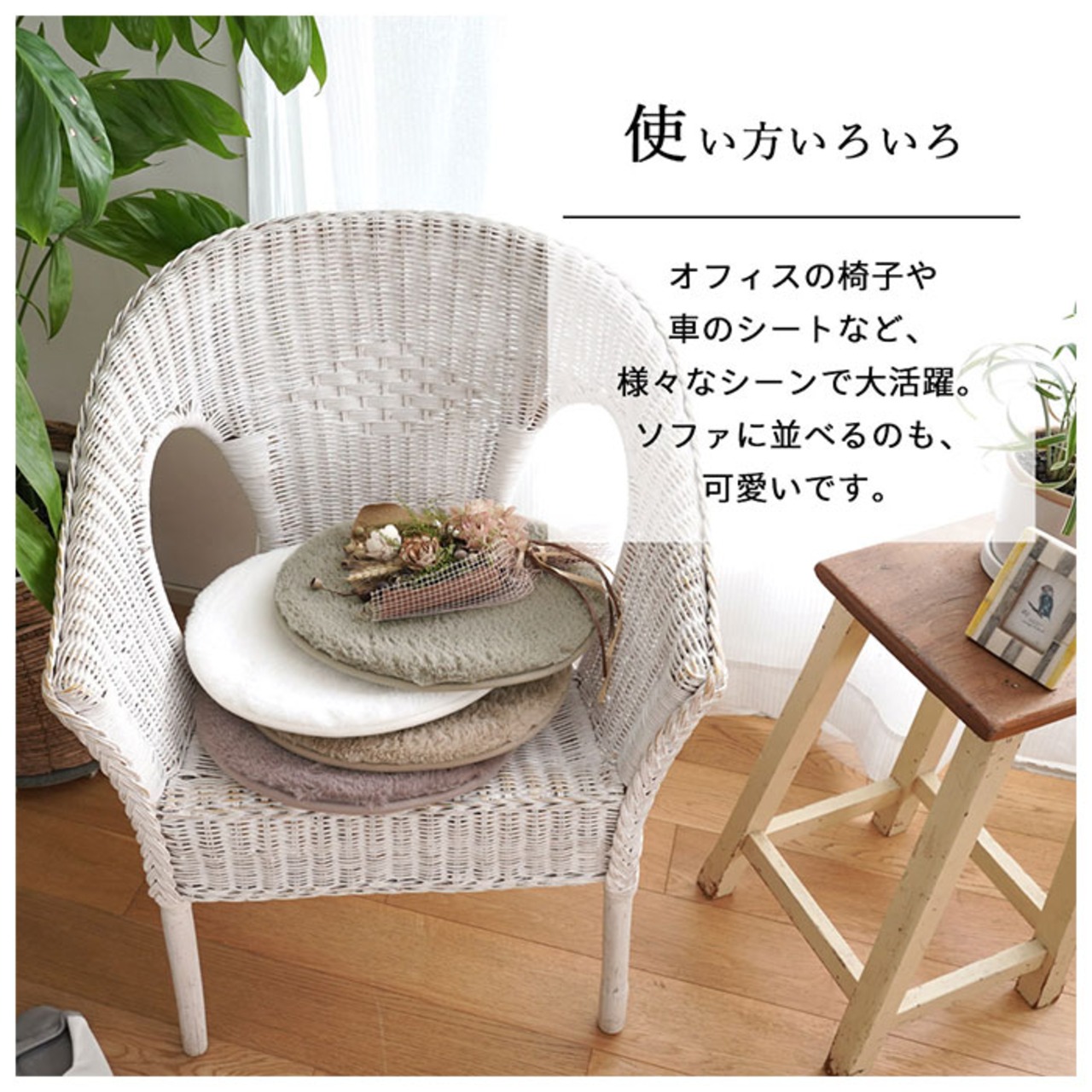 ・床やソファに並べておくだけでお部屋のアクセントになる優しいまるいカタチと、インテリアに素敵に調和するニュアンスカラーが魅力。