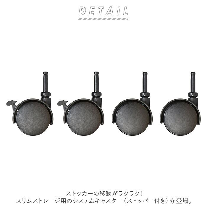 ・ストッカーの移動がラクラク!スリムストレージ用のシステムキャスター(ストッパー付き)が登場。