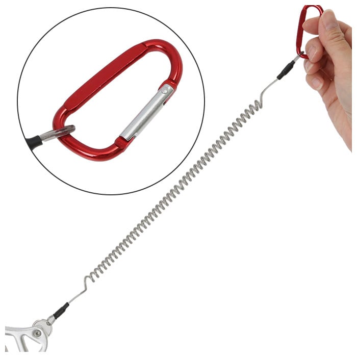 ・落下防止のためのストラップ付アルミカラビナが付属。パンツのベルトループやフィッシングベストに取り付けたまま使用可能。