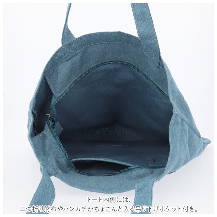 ・トート内側には、二つ折り財布やハンカチがちょこんと入る吊り下げポケット付き。