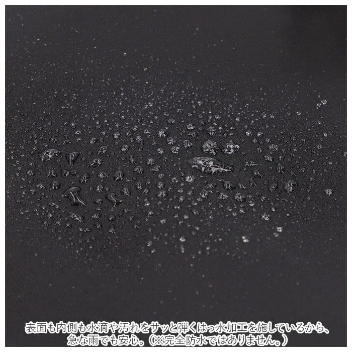・表面も内側も水滴や汚れをサッと弾くはっ水加工を施しているから、急な雨でも安心。(※完全防水ではありません。)