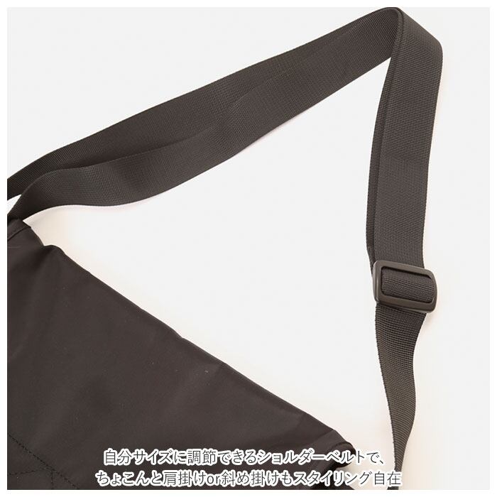 ・自分サイズに調節できるショルダーベルトで、ちょこんと肩掛けor斜め掛けもスタイリング自在。