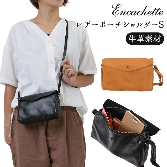 ショルダーバッグ レディース 斜め掛け 牛革 日本製 通販 小さめ 斜めがけ 大人 革 おしゃれ シンプル ナチュラル コンパクト ワンマイル フラップ ブランド Encachette アンキャシェット レザーポーチショルダーS 120271 120272 レディースバッグ