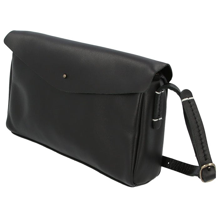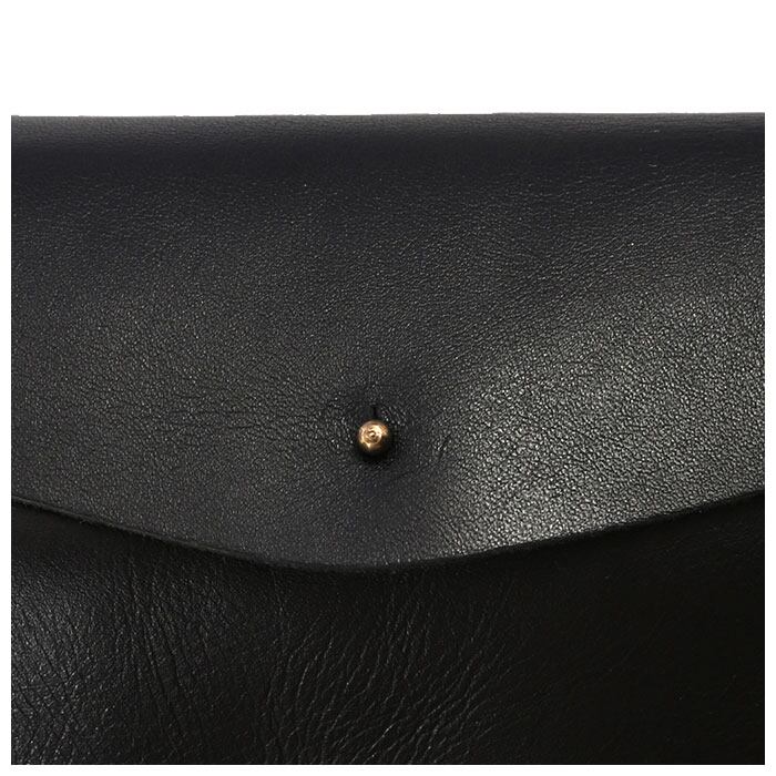 ・カシメの無い牛革のフラップをリベットに留めるだけ。装飾を極力そぎ落としたフォルムがなんといっても印象的。