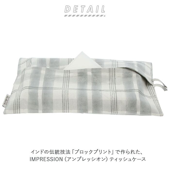 ・インドの伝統技法「ブロックプリント」で作られた、IMPRESSION(アンプレッシオン)ティッシュケース。