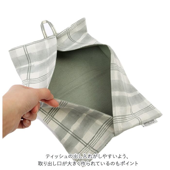 ティッシュケース 吊り下げ 通販 ティッシュカバー ソフトカバー 布 チェック ナチュラル おしゃれ 壁掛け 縦 ハンドメイド かわいい ブランド アンプレッシオン ケース カバー インテリア 雑貨 日用品