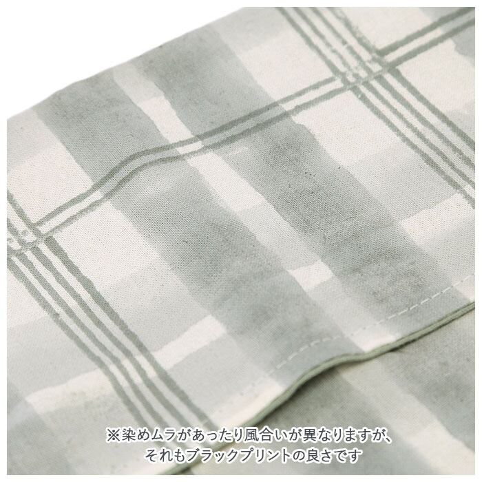 「ブロックプリント」とは、手彫りの木版に染料を付け布に押し当てていく技法。機械プリントとは異なり、版のズレやにじみが1点1点異なる表情に仕上がる、味わい深い技法。(※染めムラがあったり風合いが異なりますが、それもブラックプリントの良さです。)