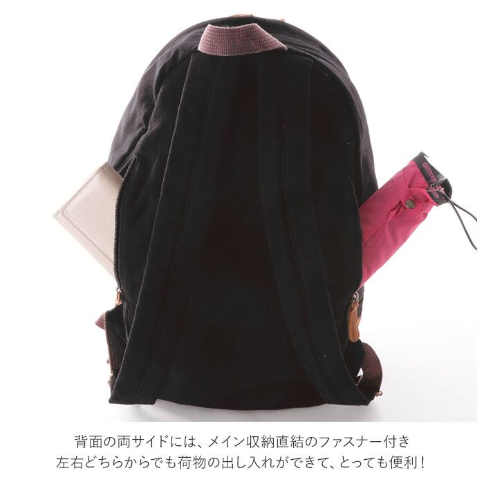 ・背面の両サイドには、メイン収納直結のファスナー付き。左右どちらからでも荷物の出し入れができて、とっても便利!