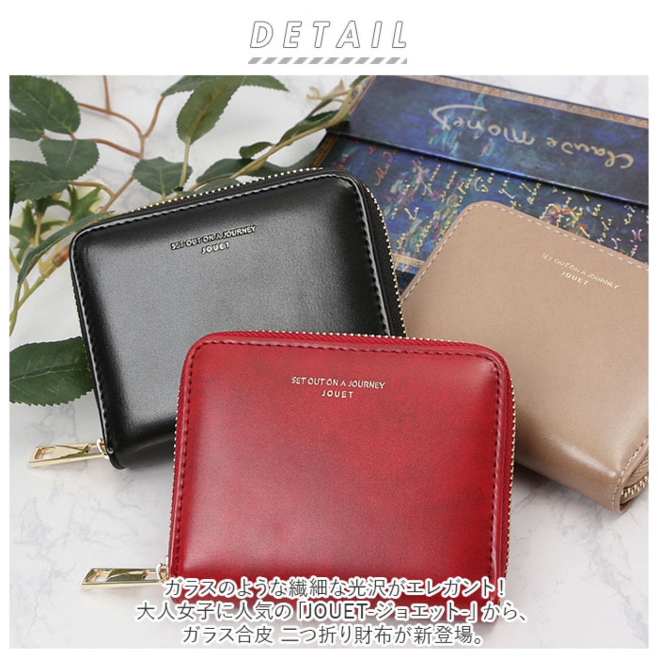 ・ガラスのような繊細な光沢がエレガント!大人女子に人気の「JOUET-ジョエット-」から、ガラス合皮 二つ折り財布が新登場。