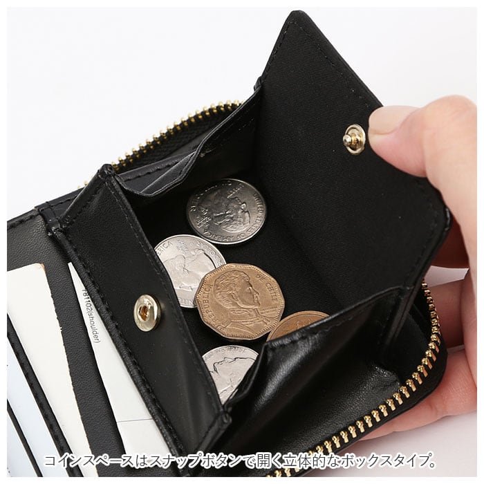 ・コインスペースはスナップボタンで開く立体的なボックスタイプ。中の小銭がひと目で見やすく、キャッシュでの支払いもスムーズ!
