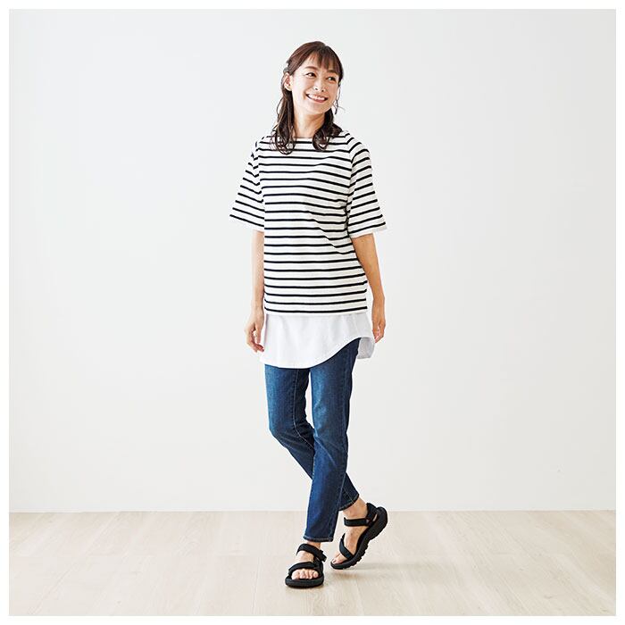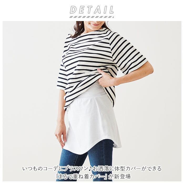 付け裾 レイヤード 通販 つけ裾 レディース おしゃれ S - M L - LL サイズ 重ね着風 チュニック風 レイヤード tシャツ ホワイト 白 レイヤード風トレーナー 体型カバー まるで重ね着カバー ファッション 小物 トップス レディースファッション