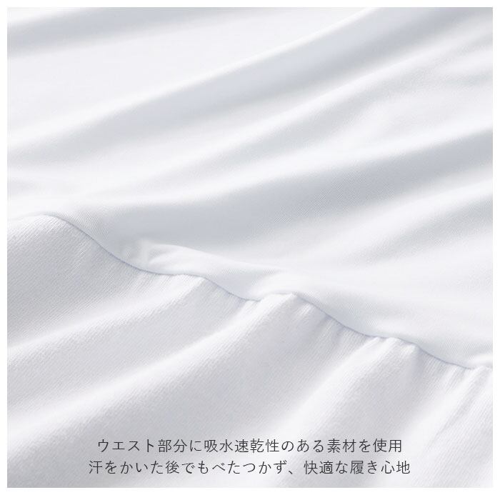 ・さらにウエスト部分に吸水速乾性のある素材を使用。汗をかいた後でもべたつかず、快適な履き心地。