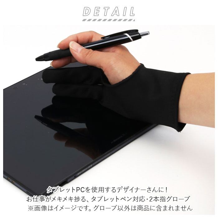 ・タブレットPCを使用するデザイナーさんに!お仕事がメキメキ捗る、タブレットペン対応・2本指グローブ。