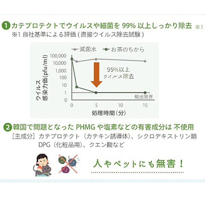 ・お茶に含まれる成分「カテキン」をベースにしているから、小さなお子様やペットのいるご家庭でも安心して使える♪