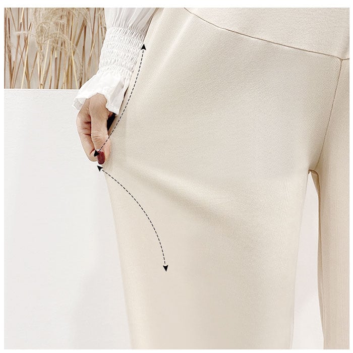 ・ウエスト内側のゴムには、サイズ調節可能なアジャスト機能を装備。産前から産後まで、長く着用できるのも嬉しいポイント。