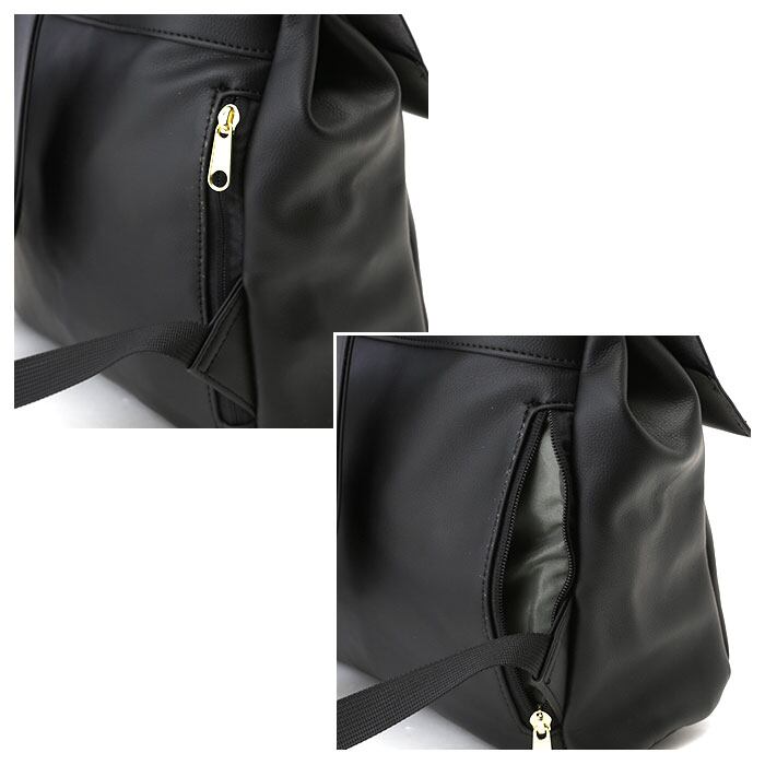 ・なめらかな手触りの生地にポリスエードを裏張りした1枚革風のミニリュック。