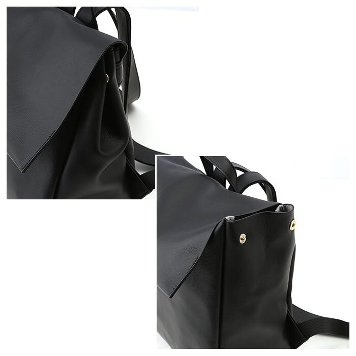 ・リュックの両サイドにはスナップボタンが付いていて、収納口の広さを調節できるつくり。