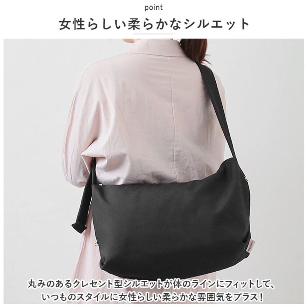 ・丸みのあるクレセント型シルエットが体のラインにフィットして、いつものスタイルに女性らしい柔らかな雰囲気をプラス!