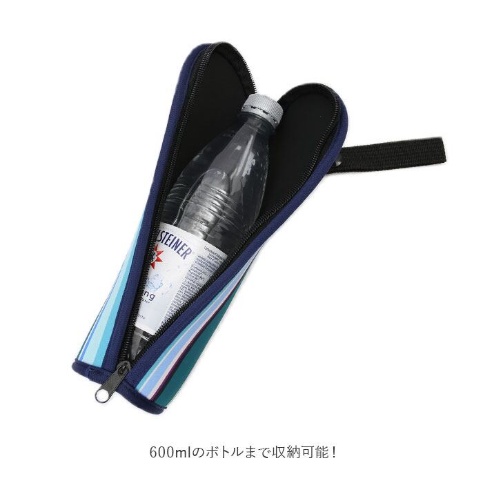 600mlのボトルまで収納可能!大きく開くダブルファスナー仕様で、ペットボトルはもちろんステンレスボトルも出し入れがしやすい!