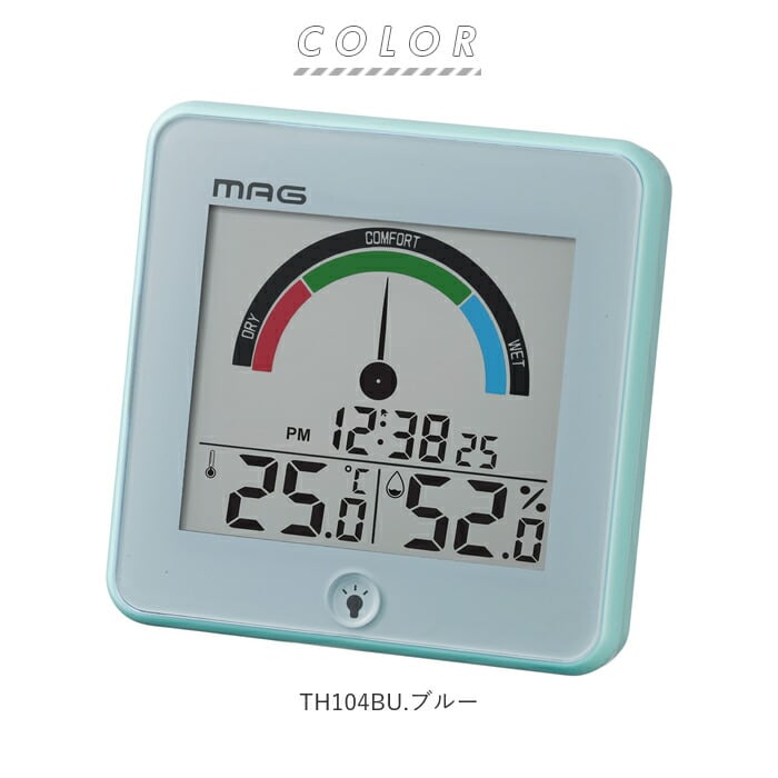 温度計 湿度計 壁掛け デジタル 通販 おしゃれ 温湿度計 温度湿度計 掛け 置き 両用 置掛両用 目覚まし時計 電子音アラーム スヌーズ機能付き LED バックライト 置き時計 掛け時計 熱中症対策 乾燥対策 ギフト プレゼント MAG マグ インデクス TH-104
