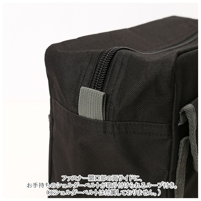・ファスナー開口部の両サイドに、お手持ちのショルダーベルトが取り付けられるループ付き。(※ショルダーベルトは付属しておりません。)
