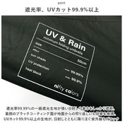 ・遮光率99.99%の一級遮光生地が強い日射しや暑さをしっかり遮断。裏側のブラックコーティング面が地面からの照り返しにも効果を発揮。