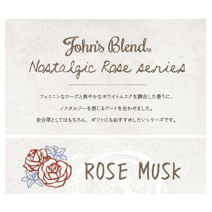 ・お部屋いっぱいに気持ち和らぐローズの香り…。John’s Blendシリーズでは定番の人気をほこるリードディフューザーに、ローズムスクの香りが新登場!