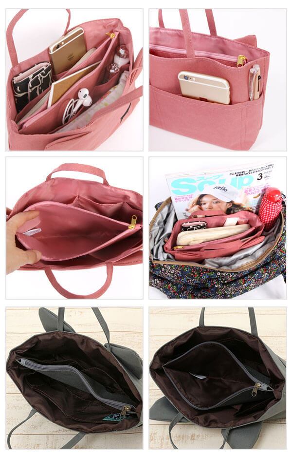 おすまし猫のプーちゃんやフレンチブルドッグのブブリンのとってもCUTEなバッグインバッグです♪ 乱雑なりがちなバッグの中をスッキリ整頓できる、バッグの中に入れるバッグです!ポケットもいくつもあって整頓しやすいです。単体でもそのままでもお使いいただけます♪