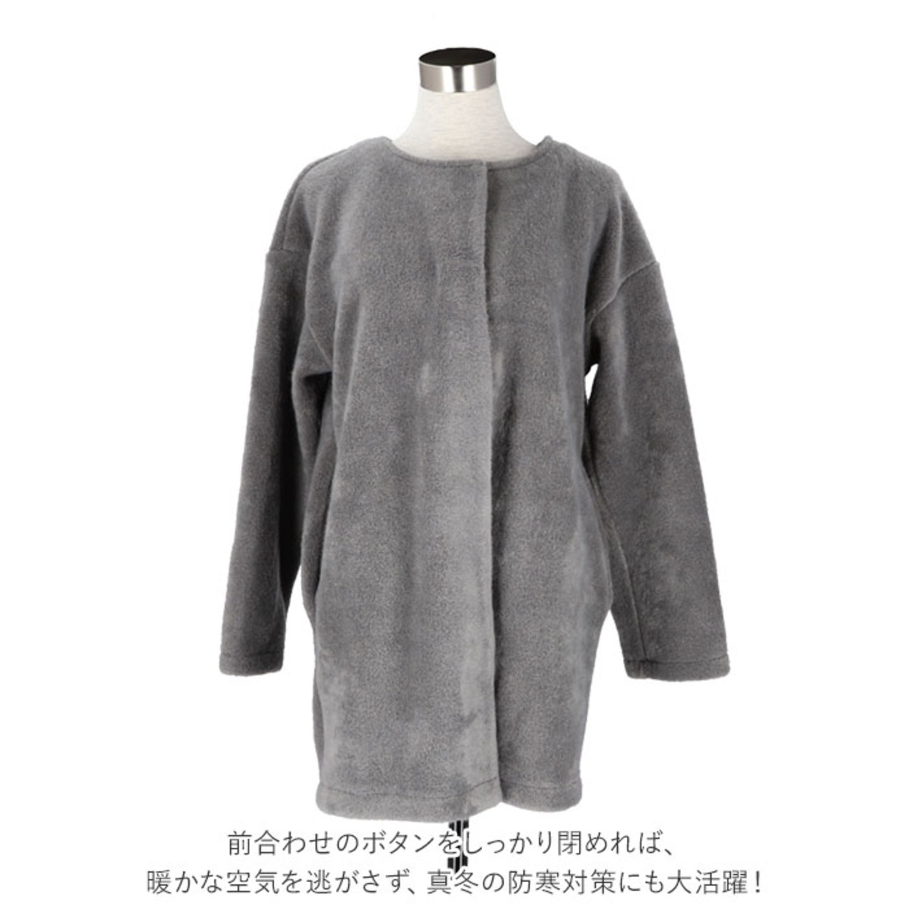 ・ふんわり軽い、厚手のウール調素材が身体をすっぽり包んでポカポカと快適。リッチな素材感で季節を先取り!