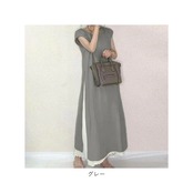 ・ワンピースはデコルテがきれいにみえるVネック。肩から腕にかけてスッキリ見えるフレンチスリーブは上品な印象。両サイドに深めのスリット入り!