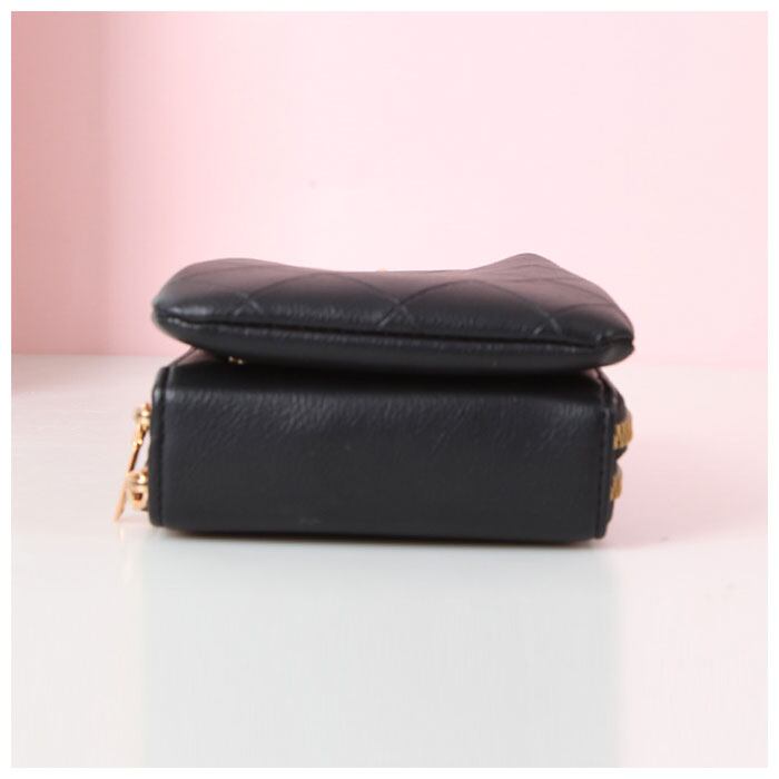 ・斜め格子柄の立体感のある模様とゴールドの金具が高級感UP。