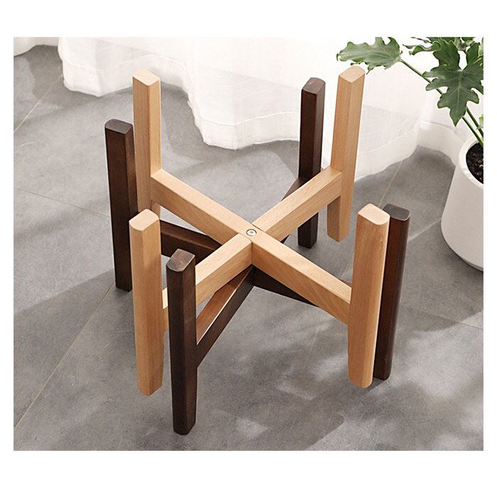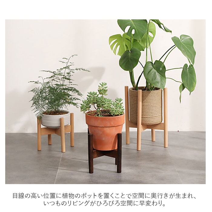・フローリングに無造作に置いてしまいがちな植物のポットを、よりスタイリッシュに演出できる木製プランタースタンド。