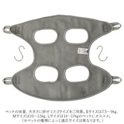 ・ペットの体重、大きさに併せてた3サイズをご用意。Sサイズは7.5〜9kg、Mサイズは10〜13kg、Lサイズは14〜17kgのペットにオススメ。(※ペットの種類によって適応サイズは異なります。)
