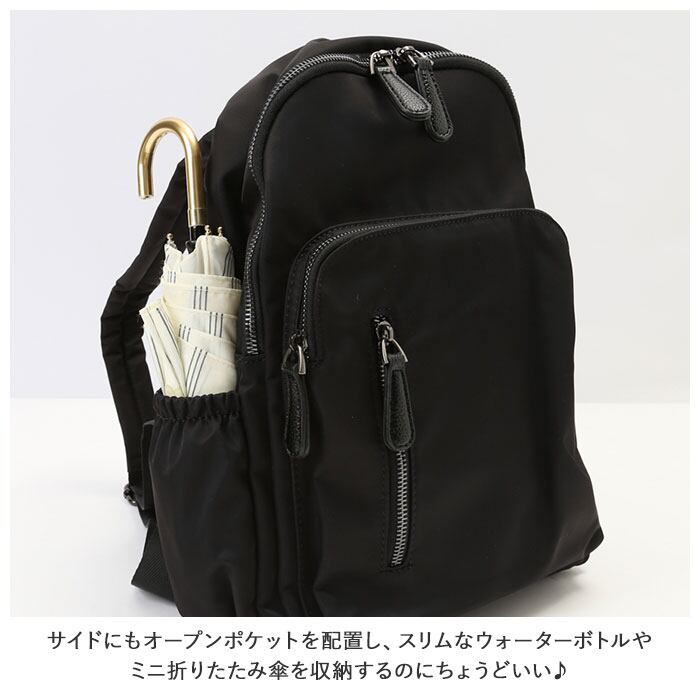 ・サイドにもオープンポケットを配置し、スリムなウォーターボトルやミニ折りたたみ傘を収納するのにちょうどいい♪
