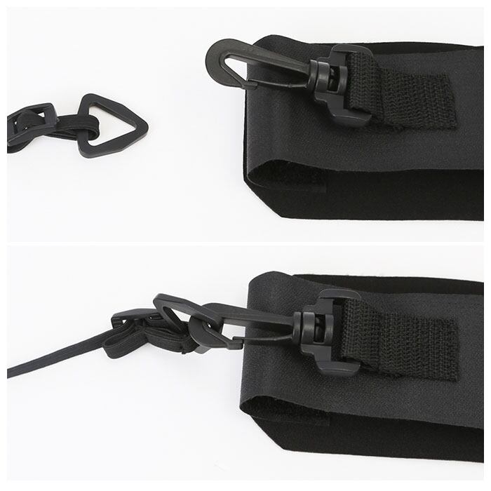 ・ゴムストラップも長さ調節ができ、最大約3mまで伸びる。