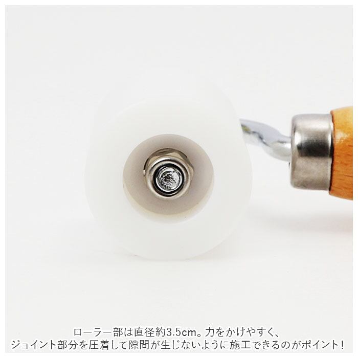 ・ローラー部は直径約3.5cm。力をかけやすく、ジョイント部分を圧着して隙間が生じないように施工できるのがポイント!