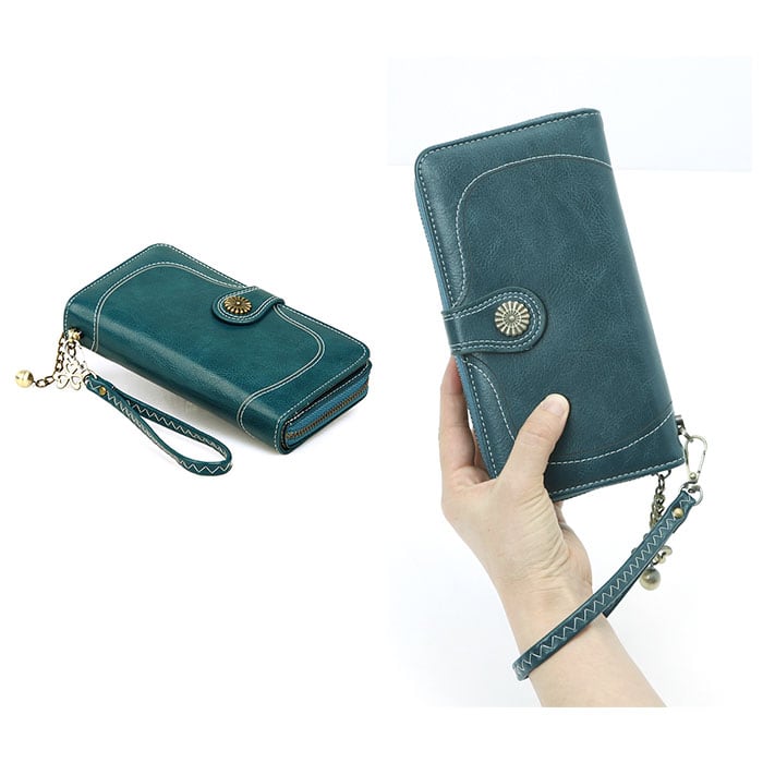 ・女性的な見た目ながら充分な収納力。お花のようなチャームがかわいいキレイめ長財布!