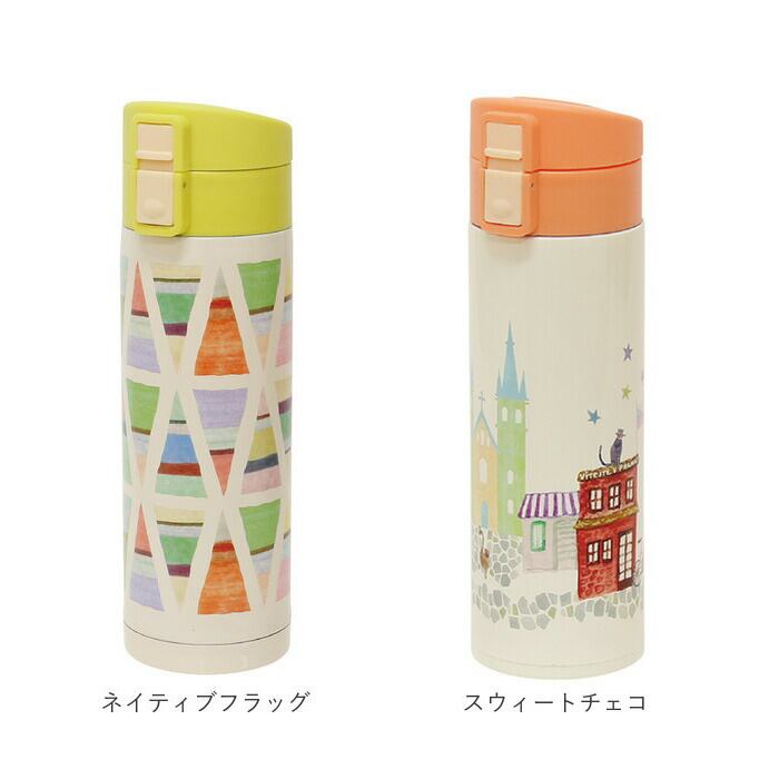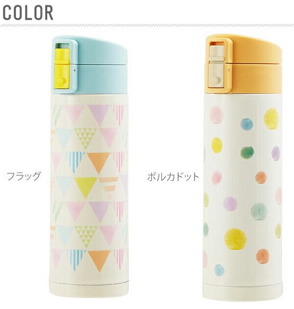 かわいいボディのカラフルおしゃれなデザインの タンブラー♪ 片手でオープンできるワンタッチタイプで、忙しい女性にもおすすめ。ランチに、スポーツに、レジャーに、ピクニックに!水分補給に大活躍! ステンレス製で保冷・保温両方に対応します。安心ロック機能付き。