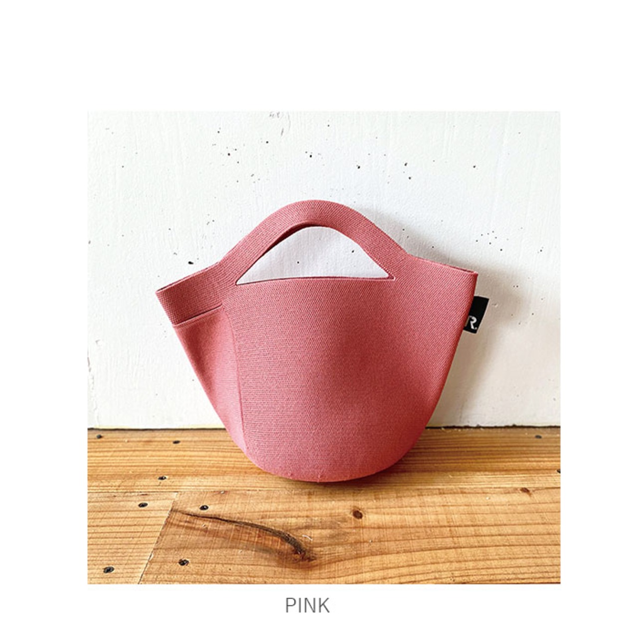 ・側面はカンガルーのおなかのポケットのようなルーポケット付き。ポケット部分は本体と一体で編まれていて、縫い目がないつくり。