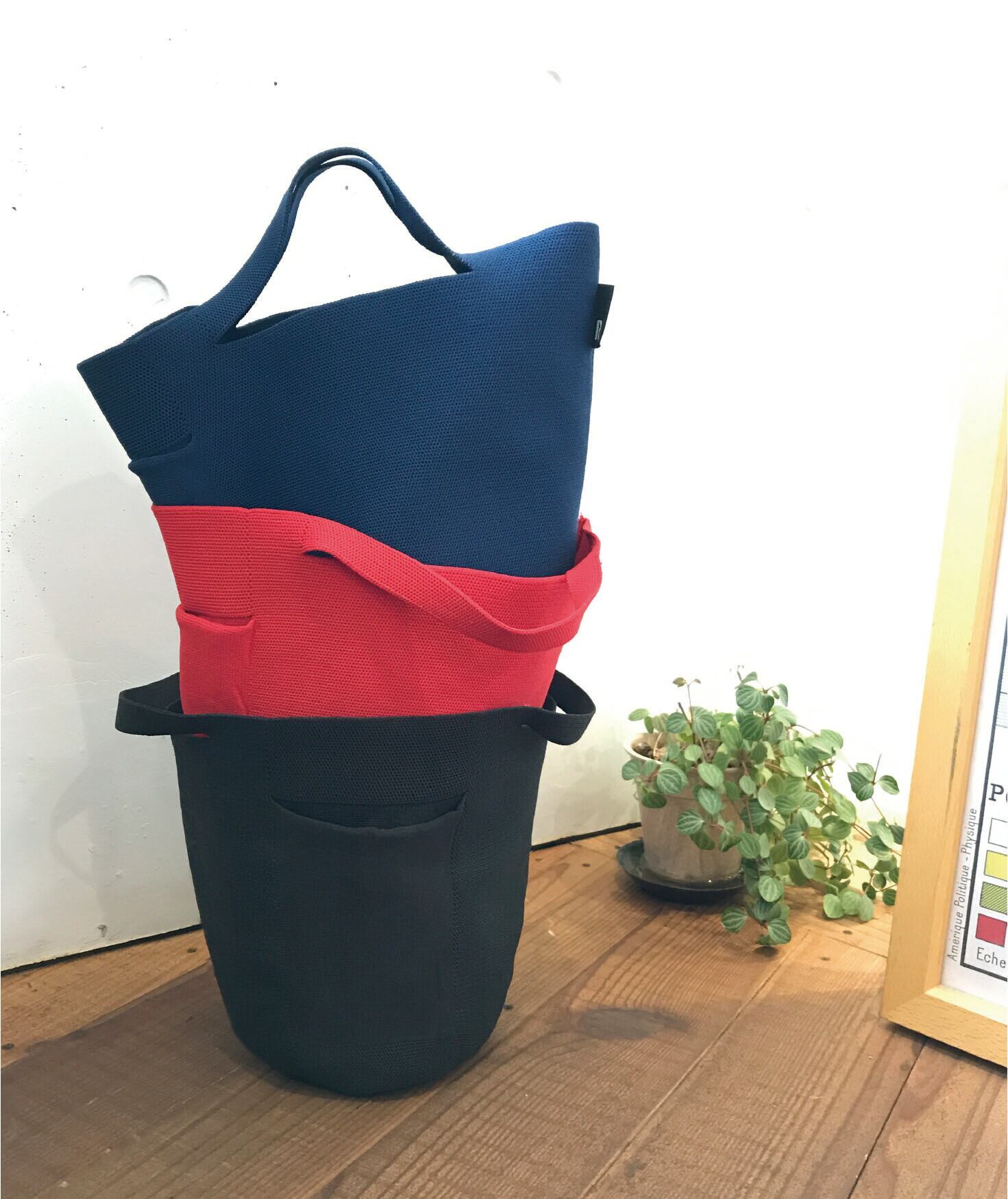 ・ペットボトルからリサイクルした先染めの糸を使用しています。また、極力縫製の工程を減らすことで環境にもやさしいトートになりました!(先染めの糸は、生地状態での染色より汚染を少なく抑えることができます。)