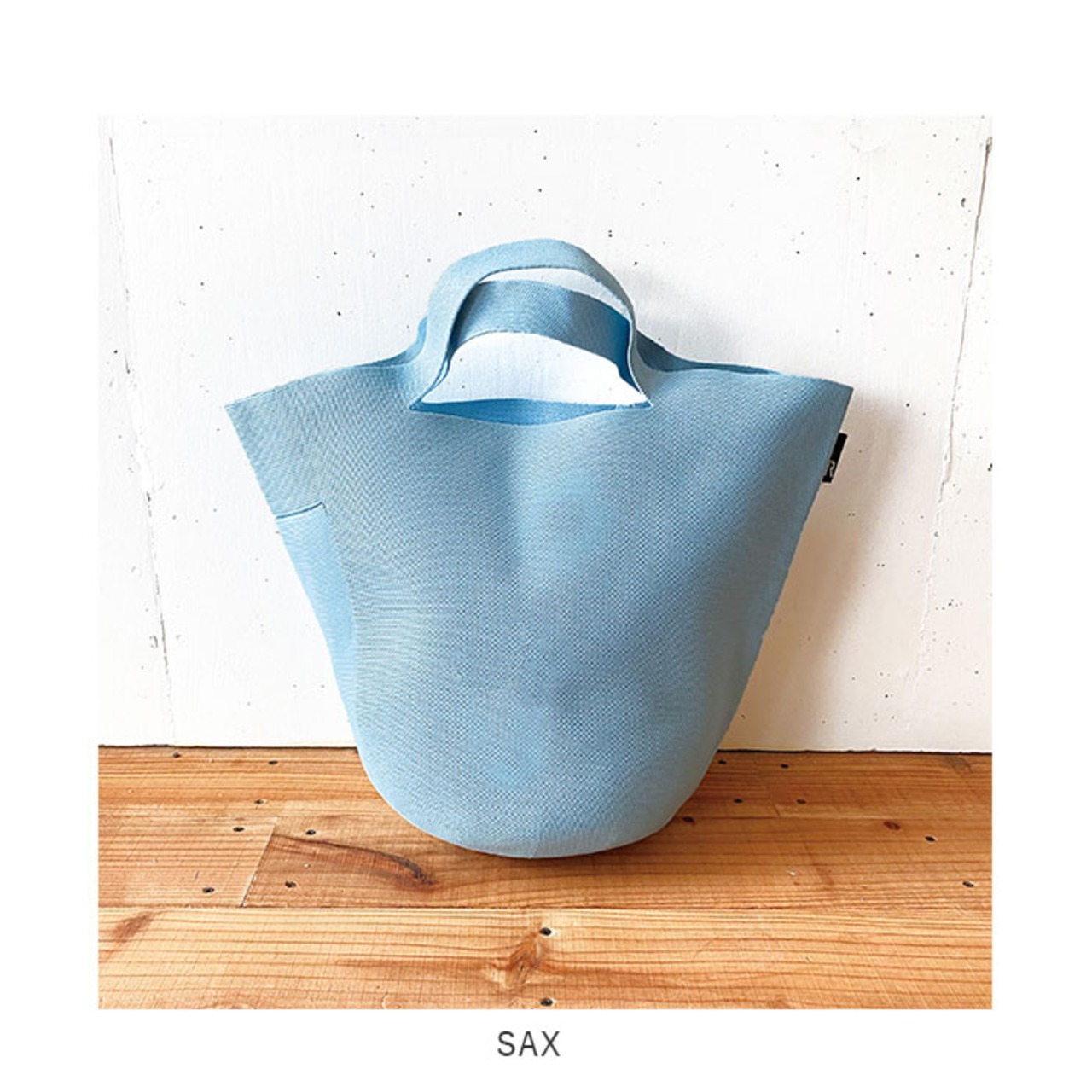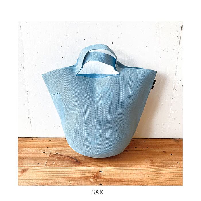 ・側面はカンガルーのおなかのポケットのようなルーポケット付き。ポケット部分は本体と一体で編まれていて、縫い目がないつくり。